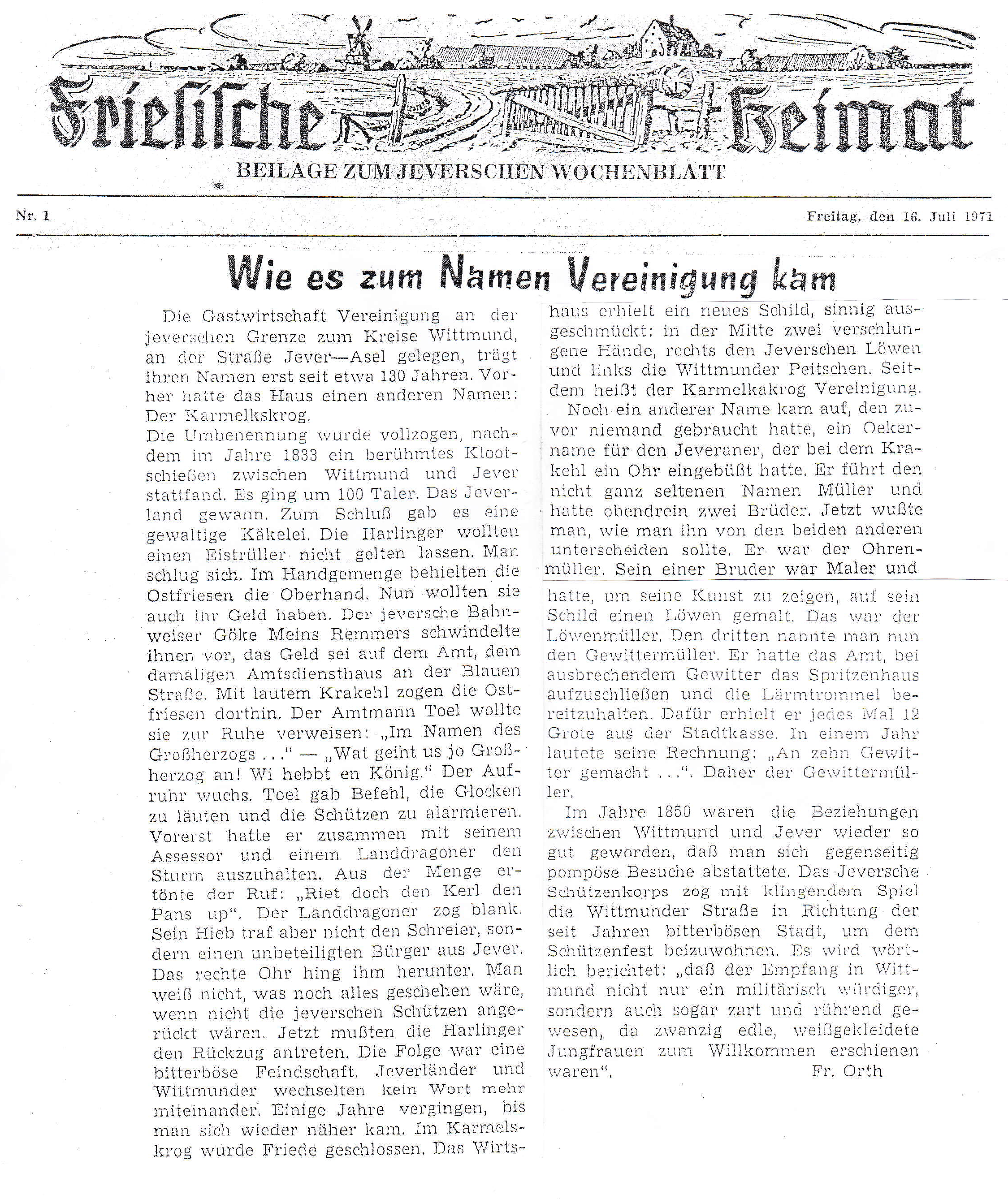 Wie es zum Namen Vereinigung kam